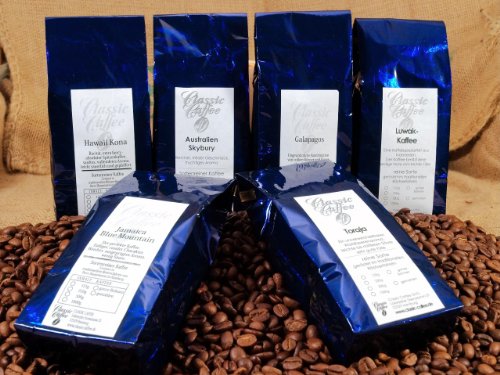 Das Gourmet Set ist an Exklusivität nicht zu überbieten.6 der besten und teuersten Kaffees der Welt machen dieses Set zu etwas ganz besonderem.Die ausgewählten Sorten könnten nicht unterschiedlicher sein.Jeder dieser Kaffees ist ein eigenes Geschmackserlebnis.Eines haben aber alle 6 gemeinsam, sie sind sehr selten.6 x 125g der besten und exquisitesten Kaffees der Welt125g Australien Skybury125g Jamaica Blue Mountain125g Galapagos125g Indonesischer Kopi Luwak125g Hawaii Kona125g Indonesischer Toraja