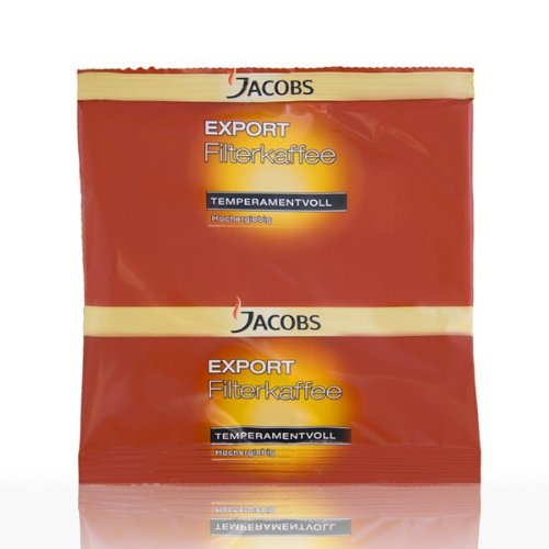 Jacobs Export Temperamentvoll - 1 Karton (90 x 55g) Kaffee gemahlen Dieser Kaffee wurde speziell für den Einsatz in der Gastronomie und Gemeinschaftsverpflegung hergestellt. Röstung, Mahlung und Mischung sind auf den Einsatz in professionellen Kaffeemaschinen abgestimmt. Standfestigkeit und hohe Qualität sind hier gewährleistet. 1 Karton: 90 Beutel á 55g