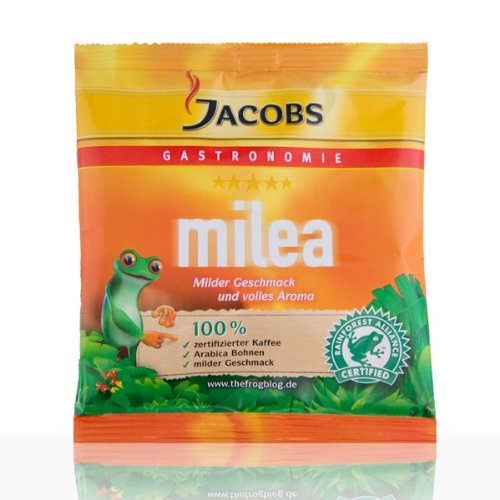JACOBS Milea - Karton (80 x 60g) Kaffee gemahlen Der bewusstere Umgang mit unserer Natur, eine sorgsame Ernährung, vermehrt sportliche Aktivitäten und praktische Nachhaltigkeit in den eigenen vier Wänden; so agieren in der Regel erfolgreiche und aktive Menschen von heute. Genau diese Klientel wünscht sich jeder Gastronom in seinem Restaurant, Hotel, Bar oder Café, sehen diese Gäste doch eher selten auf den Preis, wenn die Qualität stimmt. Um solche Gäste in der eigenen Gastronomie begrüßen zu können, bedarf es eines besonderen Angebotes, bei dem auch auf Umweltaspekte und fairen Handel mit Produkten aus den Drittweltländern eingegangen wird. Mit Jacobs Milea Kaffee gemahlen stellt der weltbekannte Kaffeeröster der Gastrono...