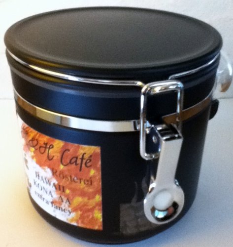 600 g Netto-Inhalt, sortenreine HAWAII KONA extra fancy Kaffeebohnen FEIN GEMAHLENE HÖCHSTE QUALITÄT frisch in eigener Rösterei veredelt, im schwarzen Kaffee-Kanister mit Sichtfenster, Portionslöffel und Aroma-Verschluß-Bügel. MHD 03.2016.